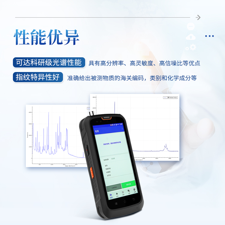 性能优异:可达科研级光谱性能,具有高分辨率、高灵敏度、高信噪比等优点;指纹特异性好,更容易提取特征峰,准确给出被测物质的海关编码,类别和化学成分等;